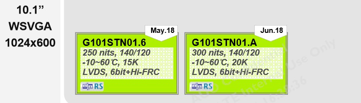 G101STN01.6友达10.1寸1024*600工业液晶屏,根据上图可知2018年5月开始量产,目前已经出样品,批量可以接受订货,批量交期时间4-6周。需要10.1寸LVDS接口的客户。
